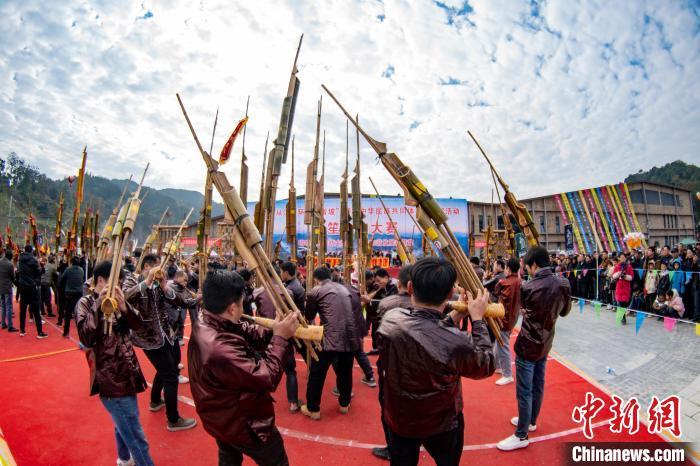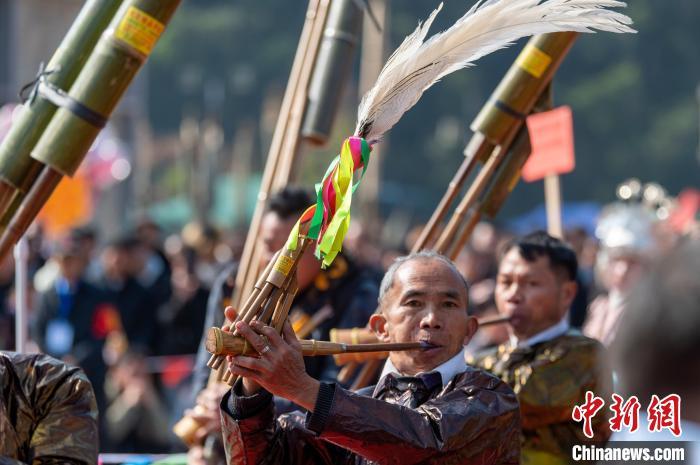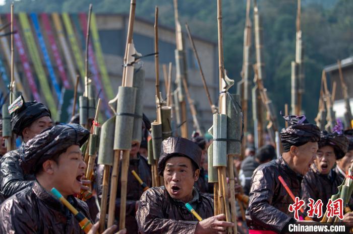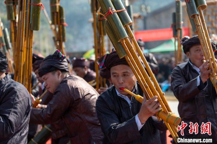 图为人们在吹奏芦笙比赛。吴德军 摄