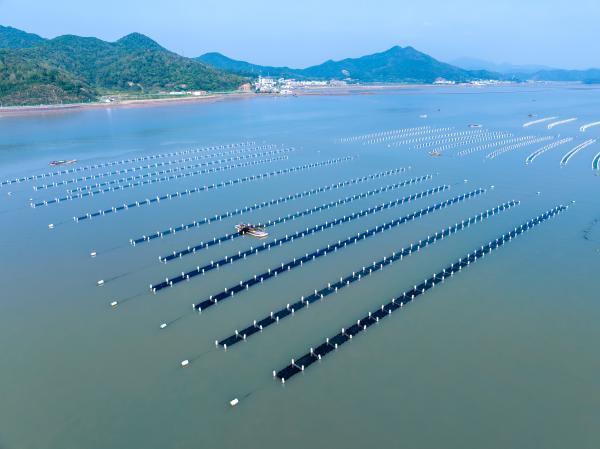 象山西沪港,村民们正在收割“头水”紫菜。周科/摄