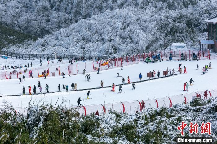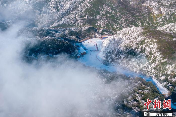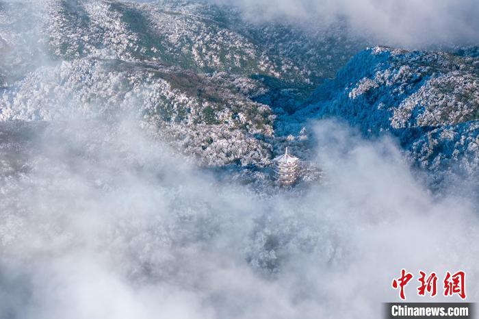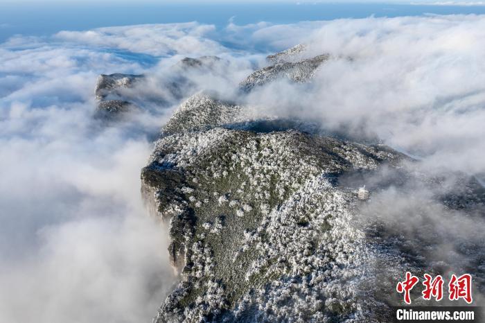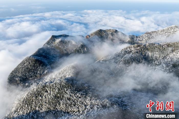 近日,雪后的重庆南川金佛山出现冰雪云海景观,美不胜收。金佛山是世界自然遗产和国家5A级旅游景区,最高峰海拔2238米。金佛山以其壮丽的自然风光和丰富的冰雪资源,成为冬季旅游的一大热门目的地。图为金佛山出现冰雪云海景观。罗川 摄
