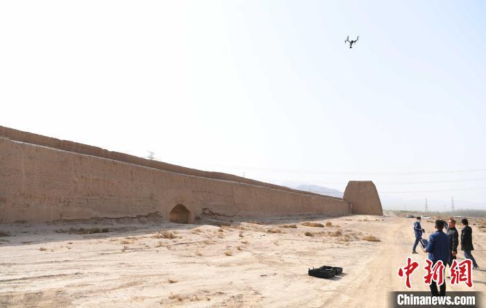 2020年4月中旬,甘肃嘉峪关,工作人员用无人机对嘉峪关长城周边的赋存环境进行了全方位巡察拍照。(资料图)杨艳敏 摄