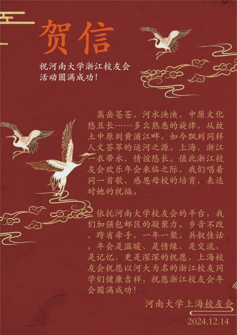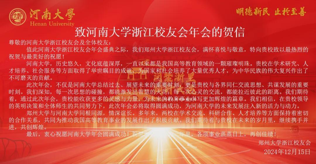 河南大学上海校友会,郑州大学浙江校友会向我会发来贺信