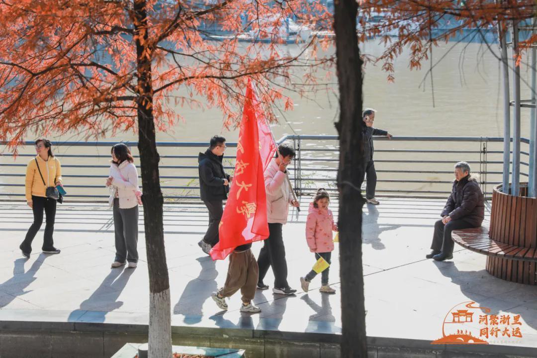 校友们齐聚武林门码头,共同沿大运河徒步6公里至拱宸桥畔运河广场。