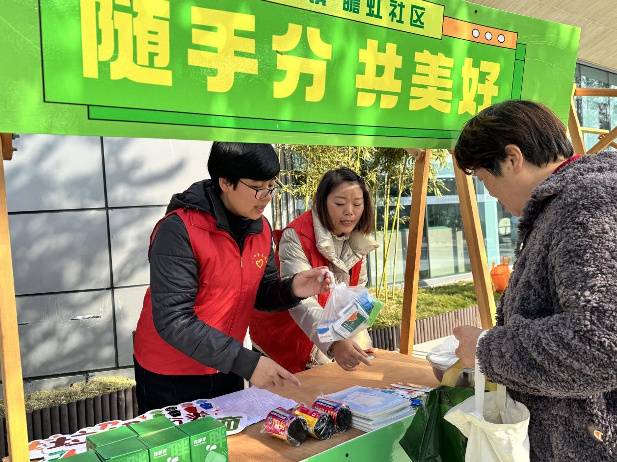 随后,“环保趣赶集”共享市集环节拉开了帷幕。市集上,各个商铺摆出了琳琅满目的生活用品,居民可以用有害垃圾兑换。同时,商铺经营人们也积极向顾客宣传环保理念,鼓励他们使用环保购物袋、自带餐具等,以减少一次性用品的使用和垃圾的产生。