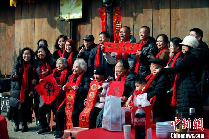 图为长街宴开席前,一家人合影留念。中新社记者 王磊 摄