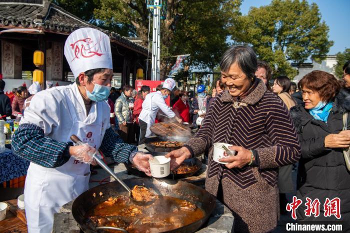 逢年过节,“无鱼不成宴”的习俗在荻港延续已久,一碗热气腾腾鱼汤饭是江南生活独有的浪漫。活动现场,袅袅鱼味弥漫飘香,数十口大锅烹制的近10吨生态乌金子鱼引来万余游客和当地村民争相品尝,渲染出浓浓新年味。