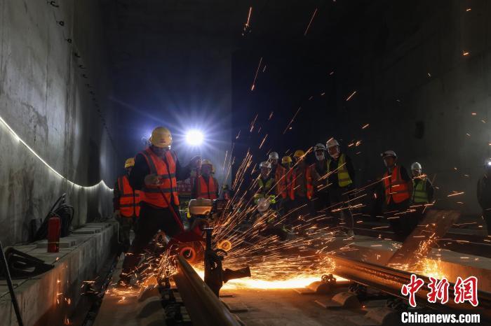 图为最后一组长轨铺设作业现场。邓联旭 摄