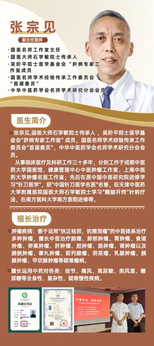 张宗见,出身中医世家,自幼受中医药熏陶,后师从多位名家,博采众长。凭借多年临床钻研,在肿瘤、痛风、结节等疑难病症治疗领域成果斐然,尤其独创的 “四法合参平衡疗法”,为众多患者带来希望之光。