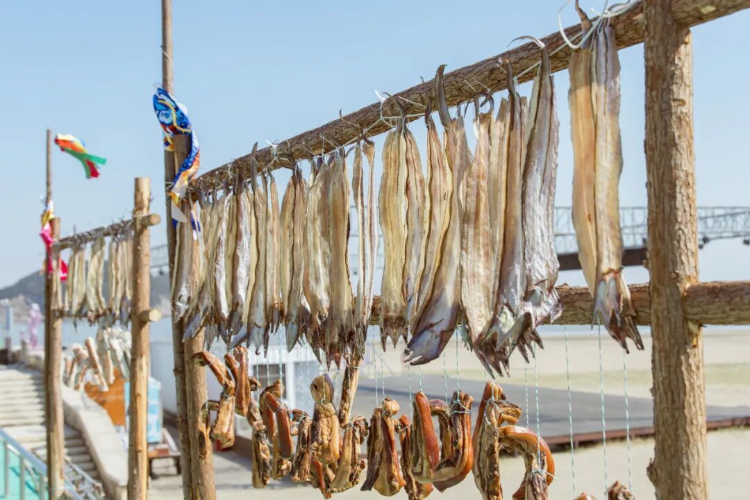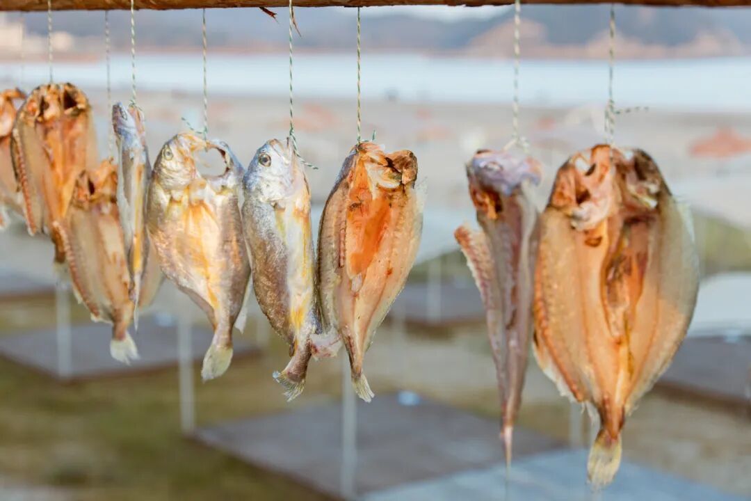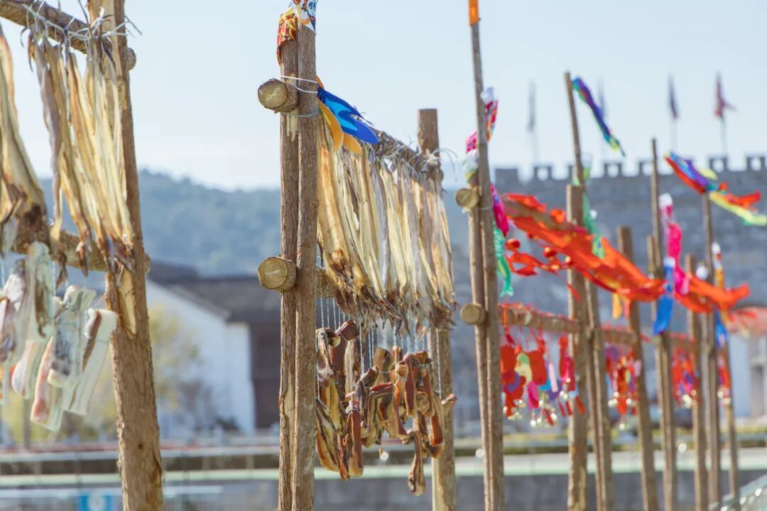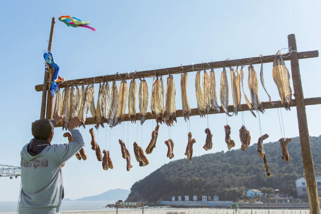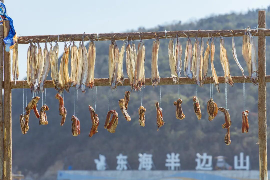 在入冬后的刮西北风的晴天,晾晒鱼鲞、腊肠腊肉的场景成为了半边山海岸线上一道独特的“晒冬”风景线。晾晒的不仅是一道海边美味,更是这座千年鱼乡独特的文化符号。