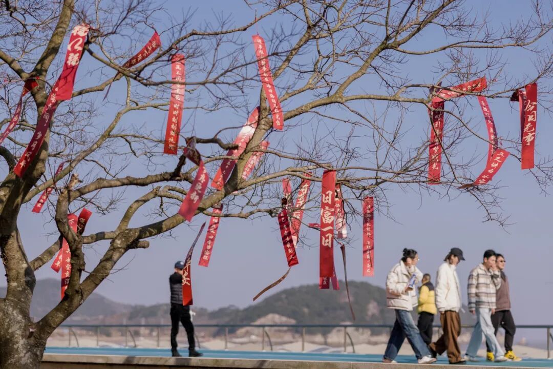 祈福带高高挂起随海风飘扬,半边山内的新年氛围也越来越足。游客们不仅可以欣赏到美丽的海景,还能感受到浓浓的年味。别忘了带上这份腊味年礼,让它成为你春节旅途中的一份特别礼物,唤醒你对家的深深思念与温暖记忆。