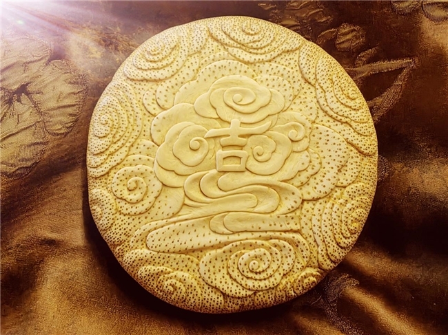 葛现伟与勒荣多吉是相识十年的老友。一次喝茶聊天时,勒荣多吉提及有一块老山檀虎皮纹沉水料,本打算做一块无事牌挂件。葛现伟得知后,决定运用竹根雕艺术,打造一块竹木镶嵌的工艺作品。经过三日精心打磨,一件精美绝伦的竹艺术镶嵌艺术品应运而生。这件作品融入了以勒荣多吉个人名字设计的祥云图案,整体美轮美奂。