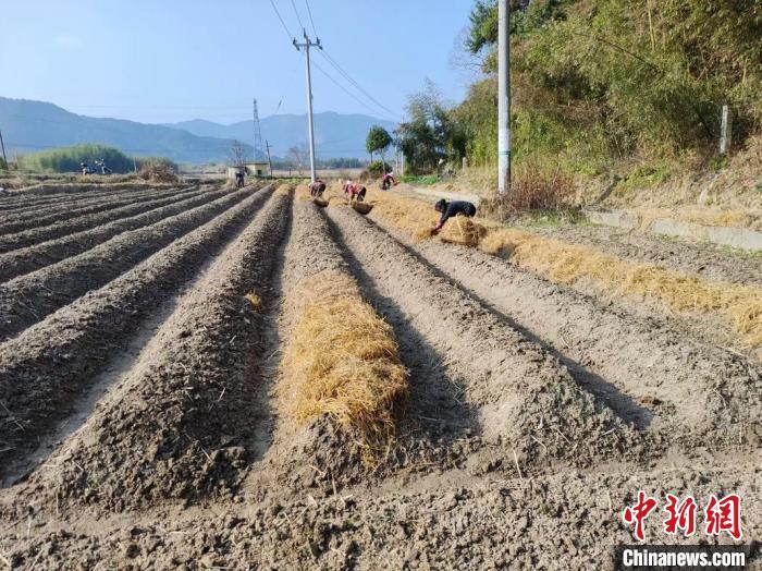 中新网江西宜黄1月22日电 (巫发阳 李悦 刘伦花)冬日时节,走进江西抚州市宜黄县东陂镇边山村土堆组竹荪菇种植基地,伴随着温暖的阳光,数位菇农正在有条不紊地铺摊竹屑、种植菇菌,田间地头一派繁忙景象。