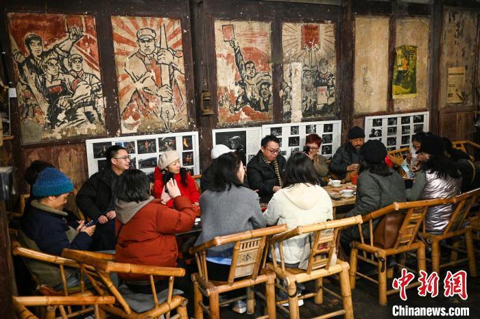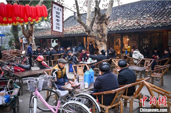 1月22日,四川成都,观音阁老茶馆内品茶聊天的茶客们。中新社记者 刘忠俊 摄