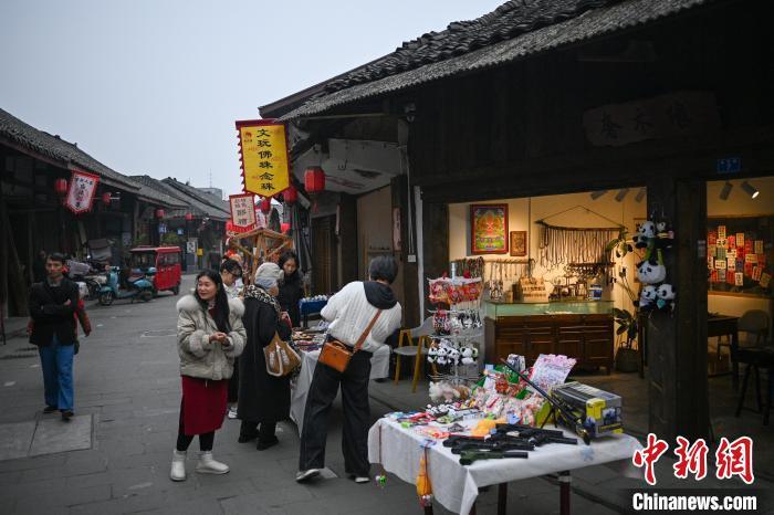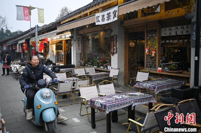 1月22日,四川成都,彭镇街头的游客。中新社记者 刘忠俊 摄