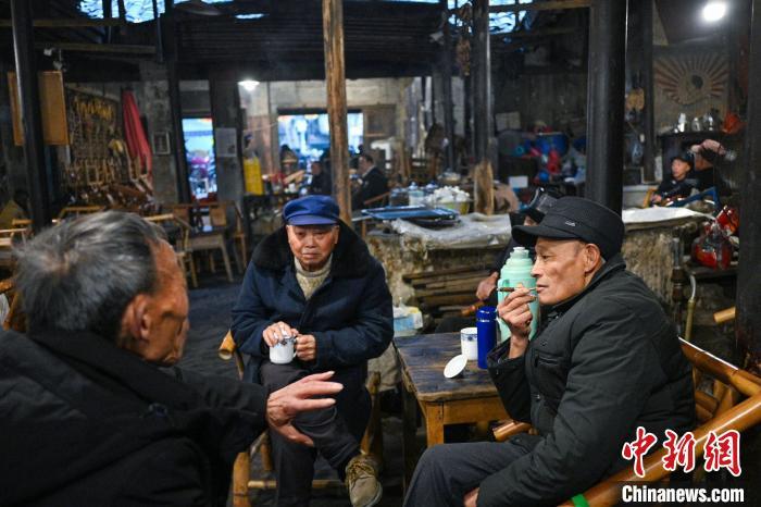 1月22日,四川成都,喝茶聊天的老茶客。中新社记者 刘忠俊 摄