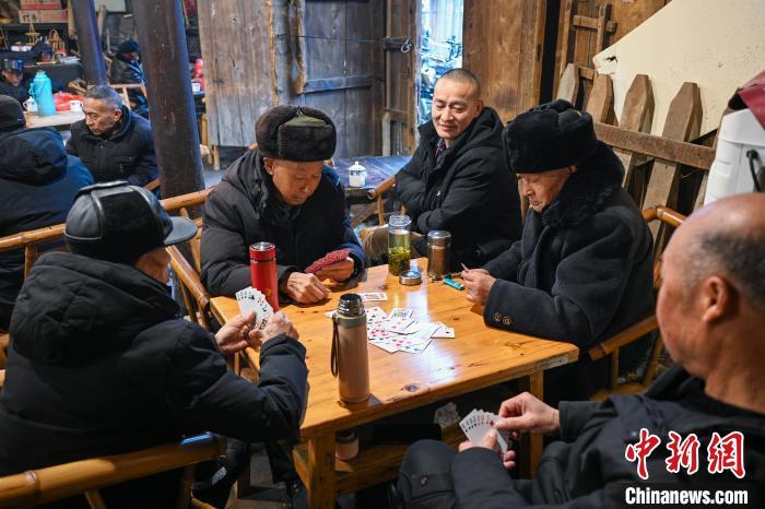 1月22日,四川成都,老茶馆内打牌的老茶客。中新社记者 刘忠俊 摄