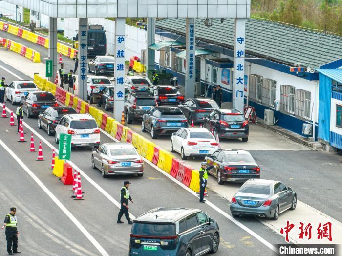 上海市公安局崇明分局交警支队民警辅警在G40沪陕高速崇启检查站入沪通道开展烟花爆竹查控工作。上海市公安局供图