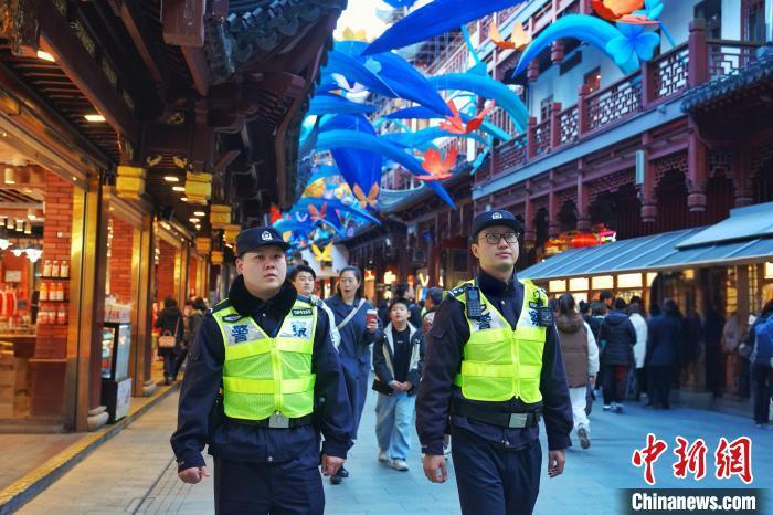 上海市公安局黄浦分局民警在豫园民俗灯会现场执勤。上海市公安局供图