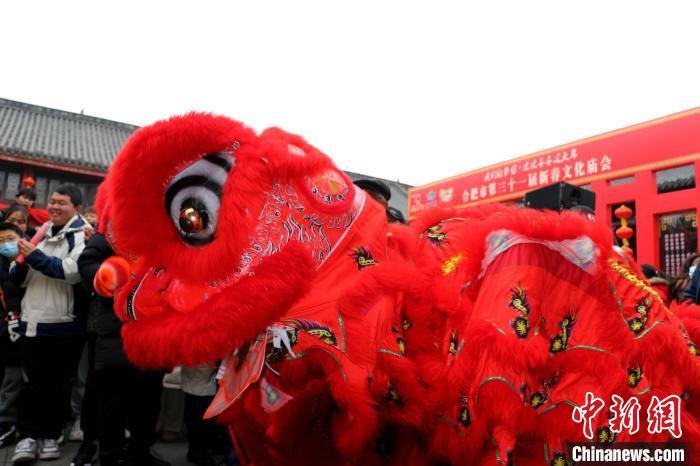 2月12日,农历正月十五,“金蛇迎春闹元宵”专场文艺演出在合肥市庐州府城隍庙大院内举行,吸引数千名合肥市民和游客前来观看。图为合肥市民在观看舞狮表演。朱孔阳 摄