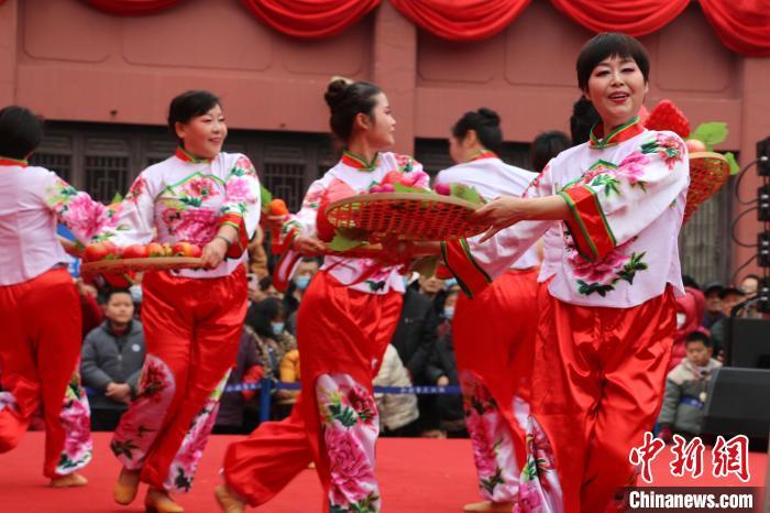 2月12日,农历正月十五,“金蛇迎春闹元宵”专场文艺演出在合肥市庐州府城隍庙大院内举行,吸引数千名合肥市民和游客前来观看。图为文艺演出现场。朱孔阳 摄