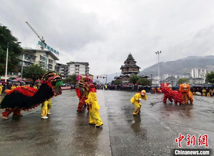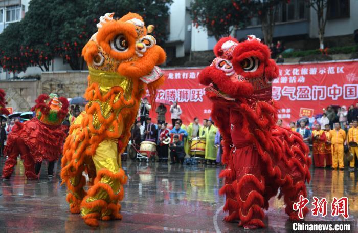 2月12日是农历正月十五,在广西桂林市龙胜各族自治县,来自该县各个乡镇的龙狮队伍开展巡游和展演,为中外游客献上一场独具魅力的民俗文化盛宴。据统计,春节期间,龙胜共开展各类文化活动90余场。图为各乡镇的龙狮队正在进行展演。韦吉阳 摄
