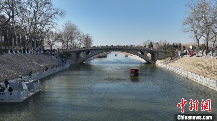 2月13日,游客在“天下第一桥”赵州桥景区游览。聂聪超摄