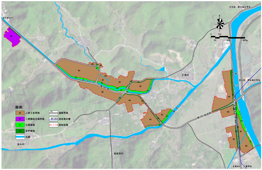 本次规划范围位于宁波市奉化区尚田街道,以区国空总规确定的城镇开发边界为依据,分为三个区块,总用地面积约为54.95公顷。