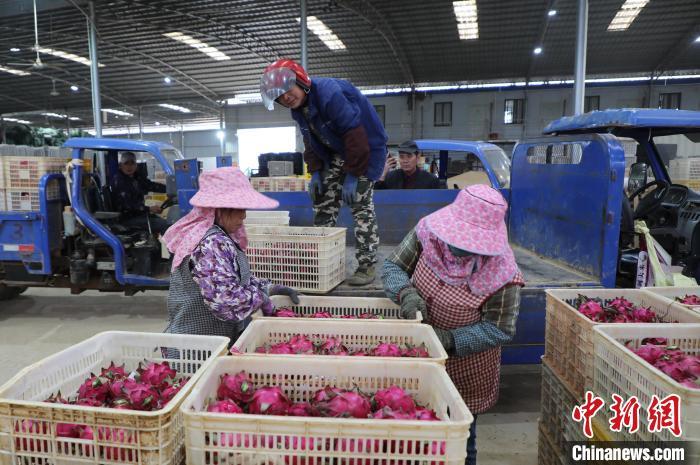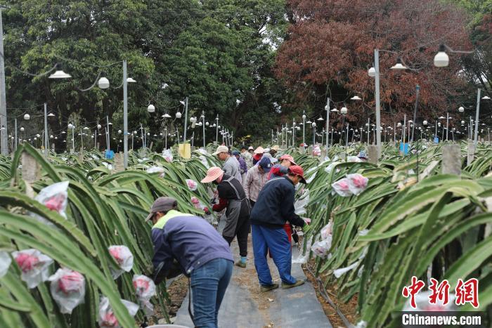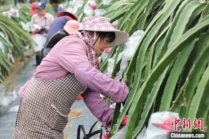 中新网崇左2月17日电 题:广西龙州:火龙果巧打“时间差”保温套袋催生“早春红”