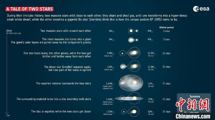“我们很快意识到,这是一个极为罕见和珍贵的发现,是一对非常难以捉摸的天体。”历西奥·马里诺解释说,这对罕见的天体由一颗被称之为Be星的大质量恒星和一颗被称为白矮星的恒星“遗骸”组成,Be星的质量是太阳的12倍,而白矮星则是一个紧凑且超高密度的天体,其质量与太阳相当。