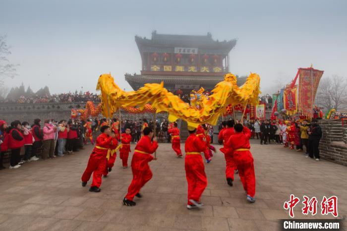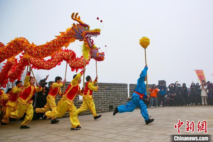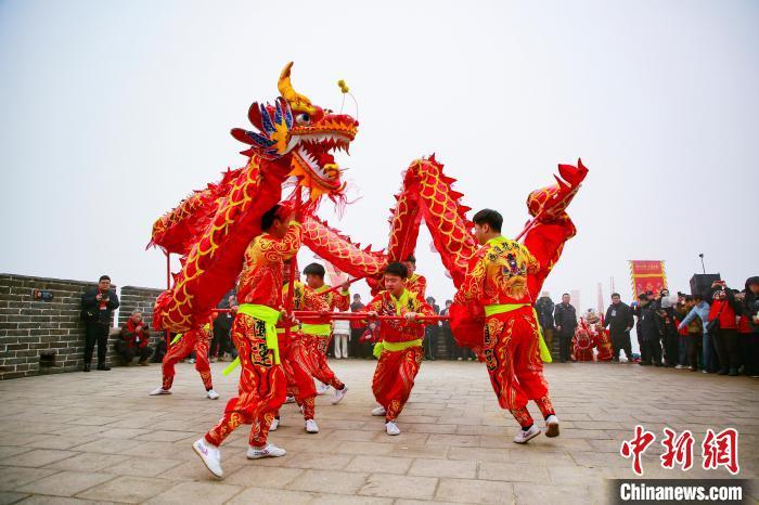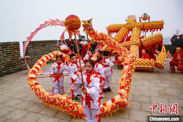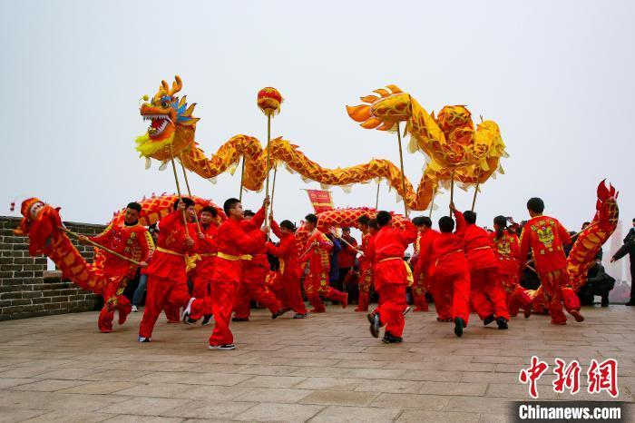 3月1日,“二月二”老龙头全国舞龙大会在河北省秦皇岛市山海关老龙头景区开启。来自北京、天津、河南、山东、山西等地的舞龙队伍相继表演,寄寓着人们对新的一年风调雨顺、五谷丰登的期盼。图为“二月二”老龙头全国舞龙大会活动现场。孙航 摄