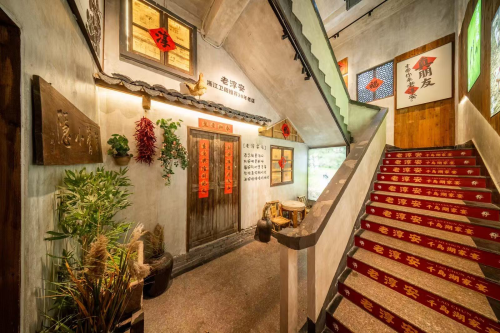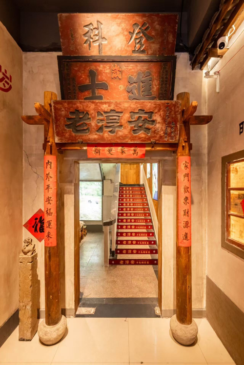 去下沙“老淳安”,进入雕花木门,满墙的“登科”、“进士”牌匾仿佛向我们述说着光昌边村古老的、深厚的文化底蕴;二楼大堂里墙上的蓑衣斗笠映着暖黄的灯光,很有农村大历史的画面感;风车、砖雕、老厨柜、老汤瓶、八仙桌、四尺凳组成了一幅浓郁的烟火气。