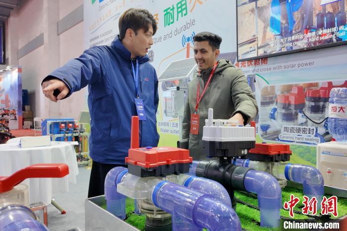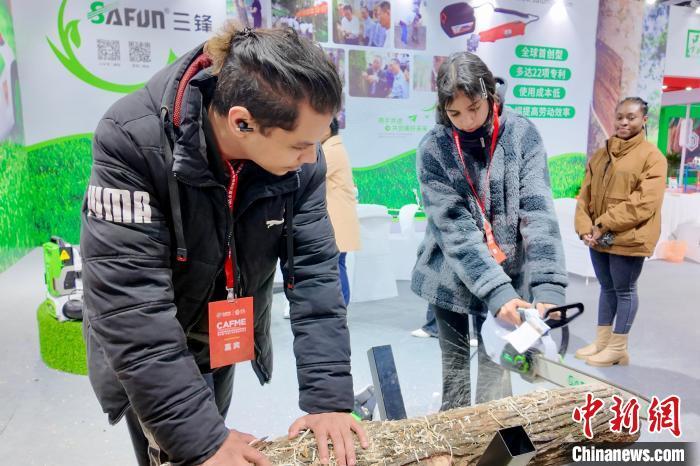 3月6日,外国参观者(右)询问中国机械、工具的价格。当日,第三届中国丘陵山区农业机械博览会暨中国(永康)农林装备博览会在浙江金华永康开幕,本届博览会以“绿色智慧 科技互联”为主题,吸引了中外观众现场参观。中新社记者 钱晨菲 摄