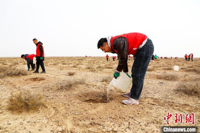 图为当地民众为新种植的梭梭苗浇水。黄尖参 摄