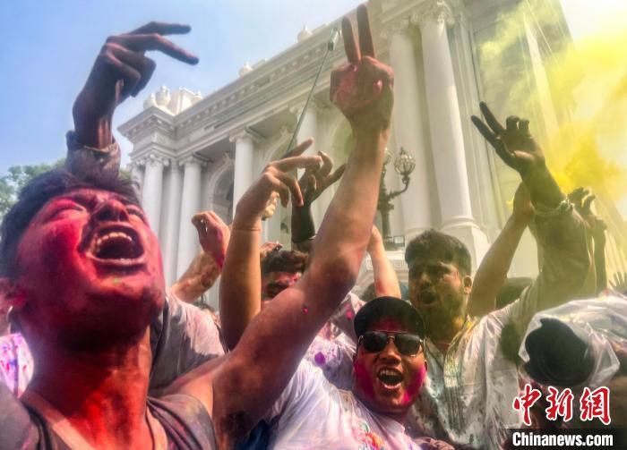 “Happy Holi(胡里节快乐)!”13日,节日问候在尼泊尔首都加德满都的大街小巷此起彼伏。
