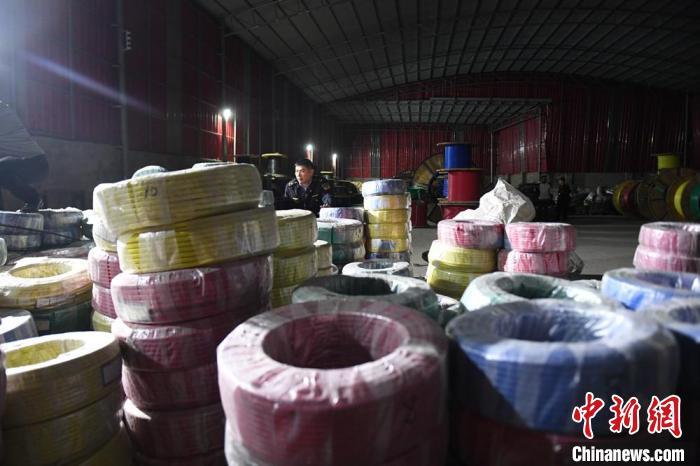 图为广西润雄电力科技有限公司位于南宁郊区仓库内堆放的电线电缆。林浩 摄