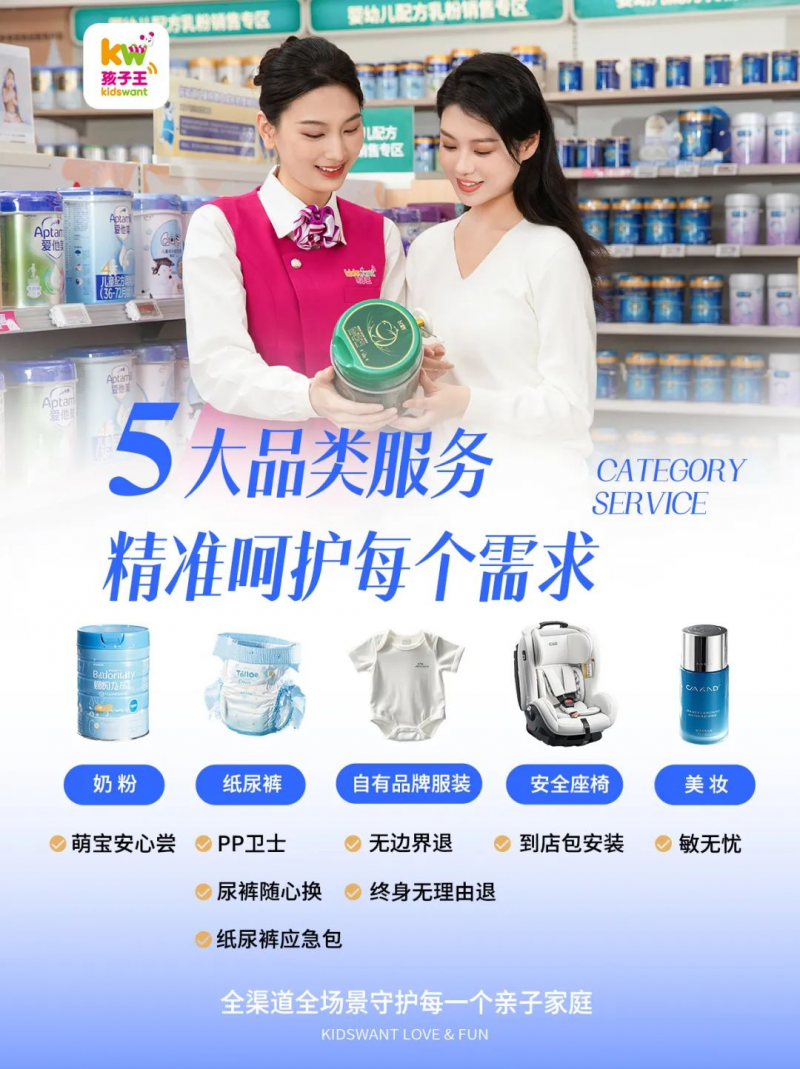 除了品质管控外,孩子王还打破了渠道壁垒,创新实现全国线下1200家直营门店和线上App、小程序等全渠道平台的“无边界随心退”服务。这种服务模式不仅为消费者提供了更加便捷的购物体验,也进一步增强了消费者对品牌的信任度和忠诚度。