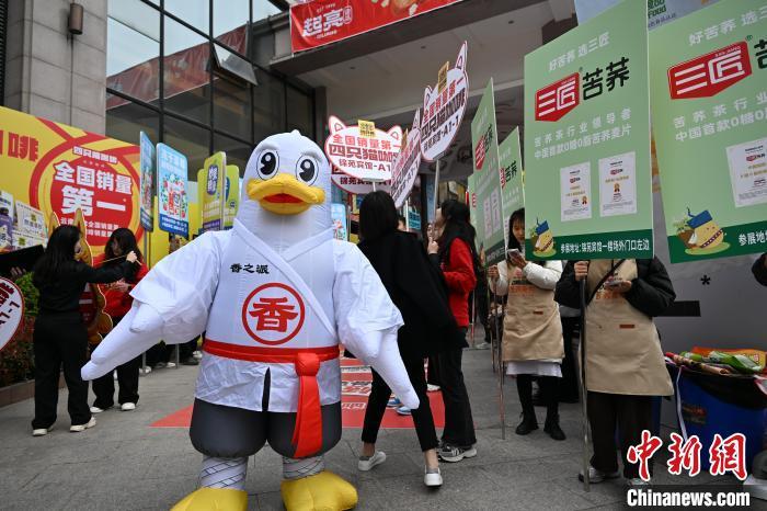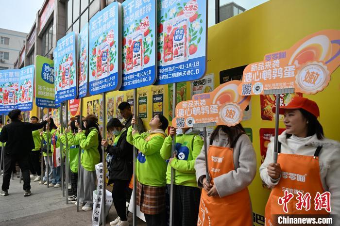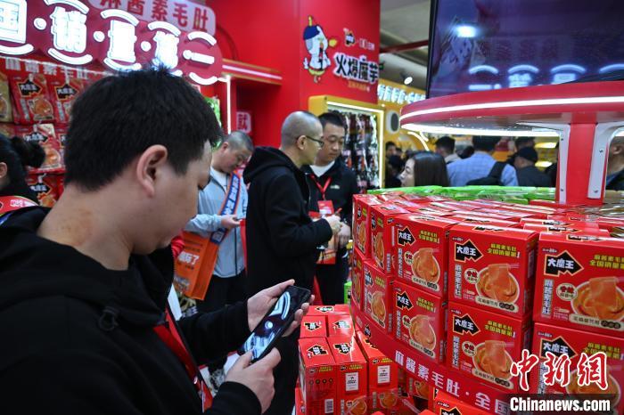3月20日,四川成都,参加第112届全国糖酒商品交易会的商家在各大酒店区域的预热展览人气火爆,吸引了不少客商洽谈、民众逛展。作为目前全球规模最大的食品和酒类综合展会,第112届全国糖酒商品交易会将于3月25日在成都开幕,预计超6600家国内外企业参展。本届糖酒会展览面积32.5万平方米,预计超6600家国内外企业参展。中新社记者 张浪 摄