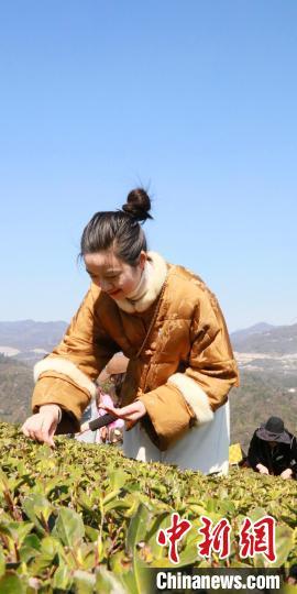 图为鹤峰茶农在田间采摘春茶。徐可 摄