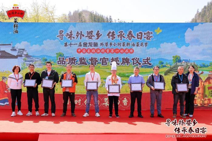 “外婆乡小榨菜籽油苦心经营菜花节十一载,通过全国各区域下沉式的深度溯源体验,在逐步强化消费者心智教育的同时,也让外婆乡小榨菜籽油成为家喻户晓的家庭用油之选。”益海嘉里安徽分公司总经理黄筱淮在活动中说到。此外,活动现场外婆乡小榨菜籽油还特别为渠道伙伴、媒体、消费者等8人进行了“品质监督官”的授牌仪式,真正做到了菜花节的全民“寻味外婆乡”。