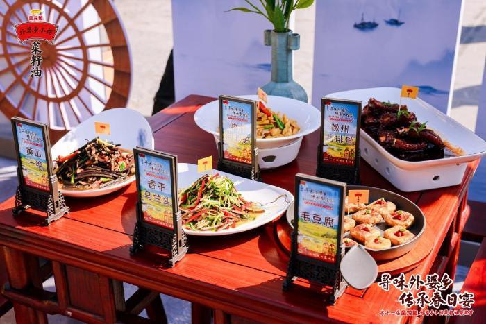 活动现场,徽菜非物质文化遗产代表性传承人潘志峰依据《徽州府志》记载,使用外婆乡小榨菜籽油复刻“腊味合蒸”“金珀豆腐”等九道明清经典菜式。