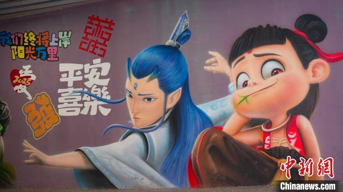 春分时节,山西晋城高平市,“哪吒”墙绘扮靓城市街头,让市民们近距离感受国产动画的独特魅力。王耀彬 摄