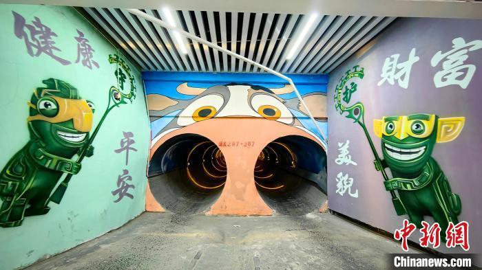 春分时节,山西晋城高平市,活灵活现的动画人物,将隧道装扮得极具童趣和创意。 王耀彬 摄