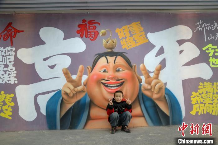 春分时节,山西晋城高平市北城街街道西关社区的民心隧道,“哪吒”墙绘吸引市民拍照打卡。王耀彬 摄