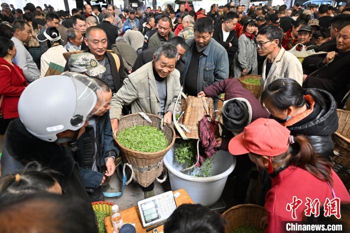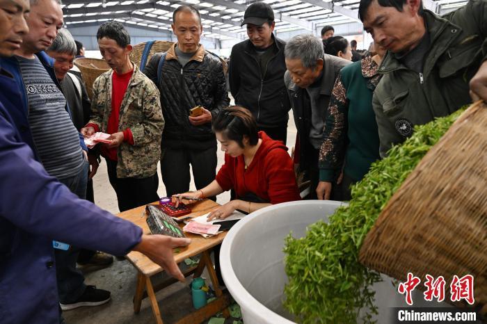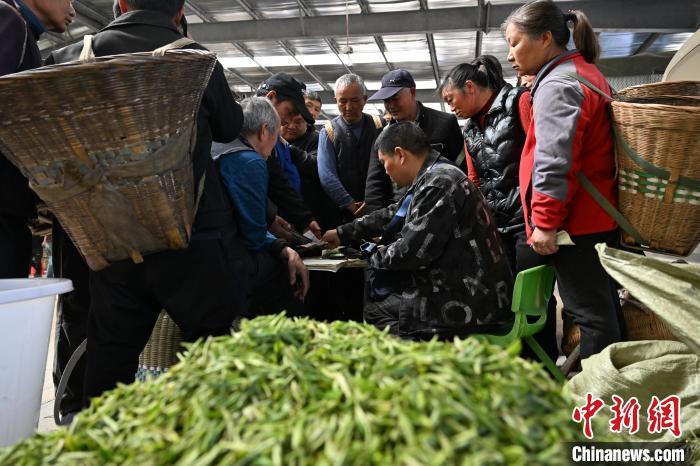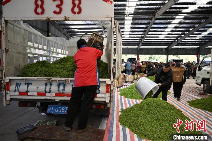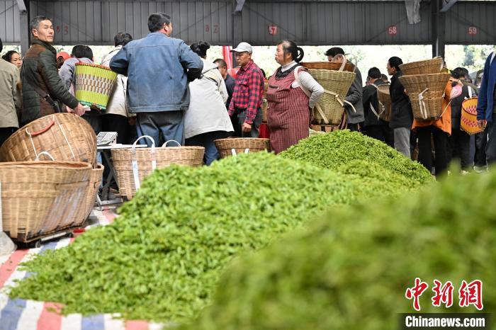 图为繁忙的双河鲜叶交易市场。 中新社记者 张浪 摄