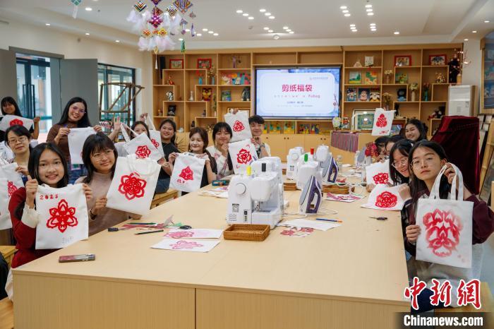 3月25日,泰国学生在柳州城市职业学院体验剪纸课程。樊金满 摄