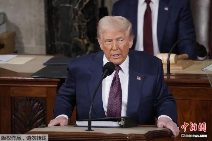 当地时间3月4日,美国总统特朗普在美国国会发表演讲。