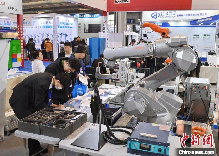 3月27日,第17届长春先进装备制造业博览会展出大量工业机器人。 中新社记者 张瑶 摄