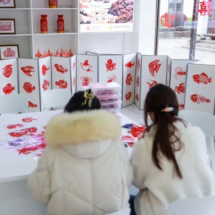 在五彩渔镇的才华剪纸店里非遗匠人指导游客剪出各种生动的海洋生物,石浦鲜明的渔家生活诞生了当地别具一格的渔家剪纸艺术,有着重要的文化和民俗价值。一位宝妈还特将作品裱成挂饰:“这是孩子读懂海洋故事的一次特别体验。”