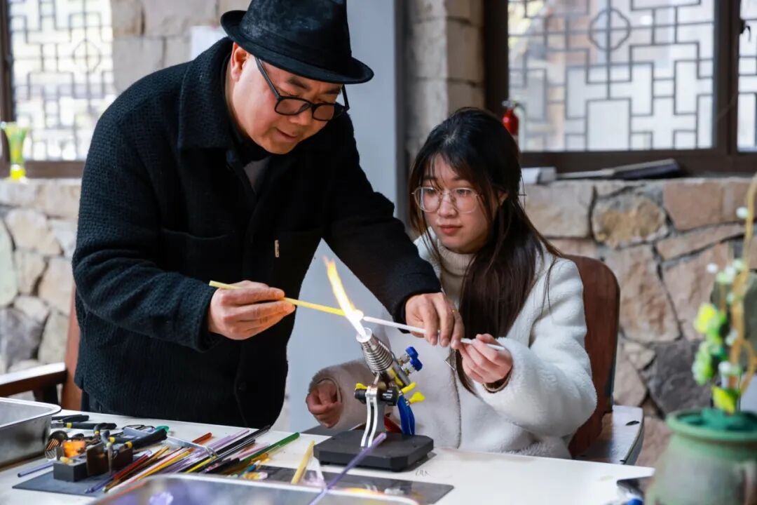 在三味堂手工教室内,不少游客跟随手艺人参与琉璃体验:熔融琉璃在镊尖化作水母触腕,有人直呼“像驯服了一片海”。现场作品展区被游客称为“深海艺术馆”。