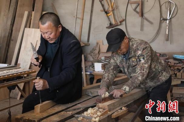 院内的木工棚里,59岁的徒弟张相正跟着史良贵学习开榫技巧。3年来,这对师徒已合作完成20余套家具。