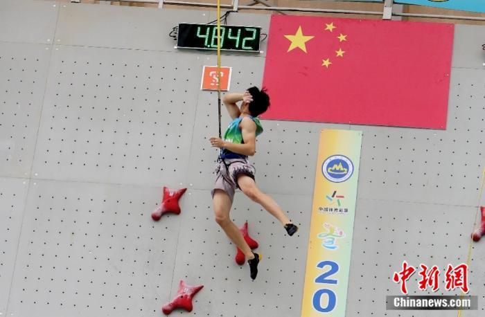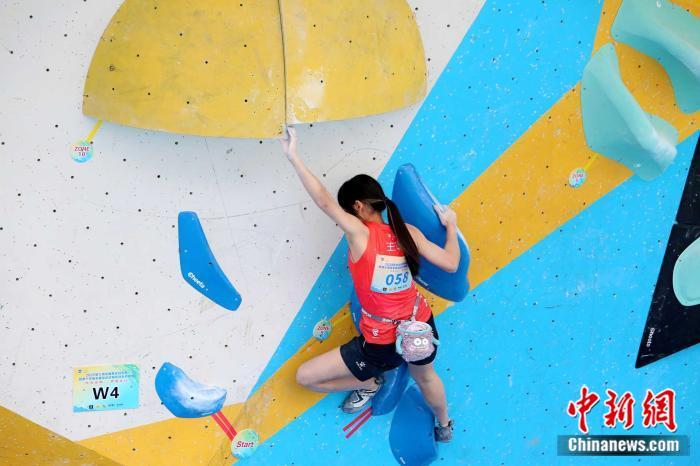 图为全运会攀岩项目资格赛速度决赛。 主办方供图